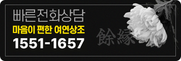 - A : 너무 고민하지 않으셔도 됩니다. 운명하신 순간 바로 여연상조로 연락을 주시면, 담당 장례지도사가 앰뷸런스 조치와 장례식장 예약을 먼저 진행한 뒤 직접 찾아뵙고 3일간 모든 장례 절차를 도와드립니다.